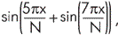 sin|(5*pi*|[1:100]/100+sin(7*pi*|[1:100]/100)).