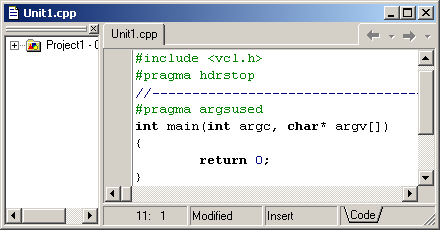 1. Запускаємо С++ Builder. Створюємо окрему, папку, відкривши її, зберігаємо пропоновані файли Unit1.cpp і Project1.cpp (рекомендуємо без зміни).