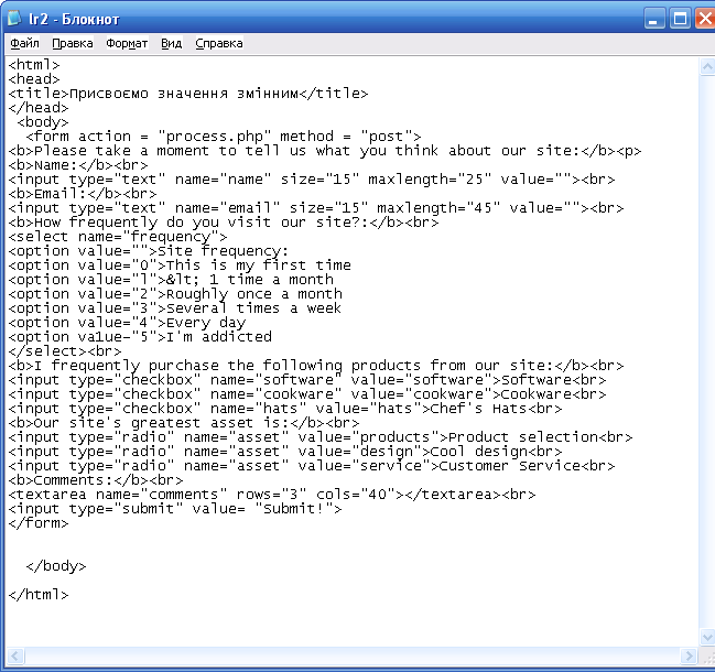 Листинг 1. Приклад форми для збору даних