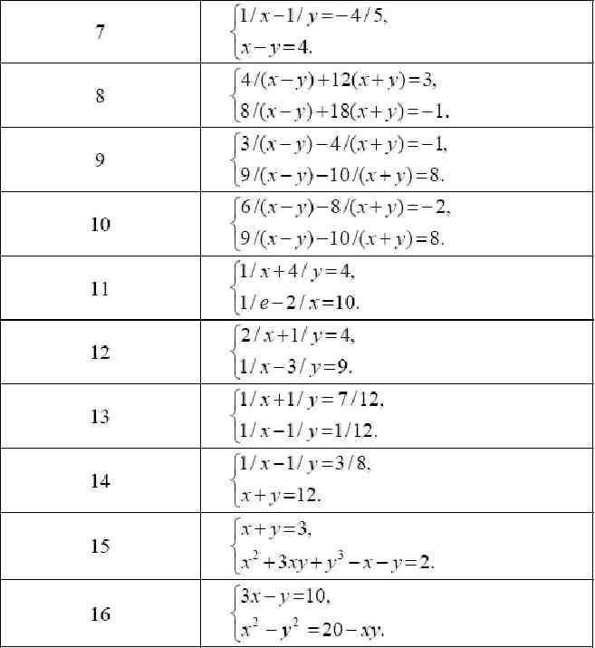 Вирішити систему рівнянь алгебри, використовуючи команду solve|. Вибрати рівняння згідно своєму варіанту з табл.
