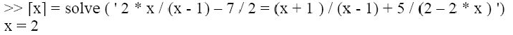 >> p=|(a-|(4*a-9))/(a-2|)/(2*a-2*a/(a-2|)) % задаємо| символьний| вираз|