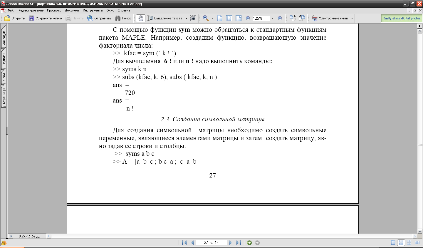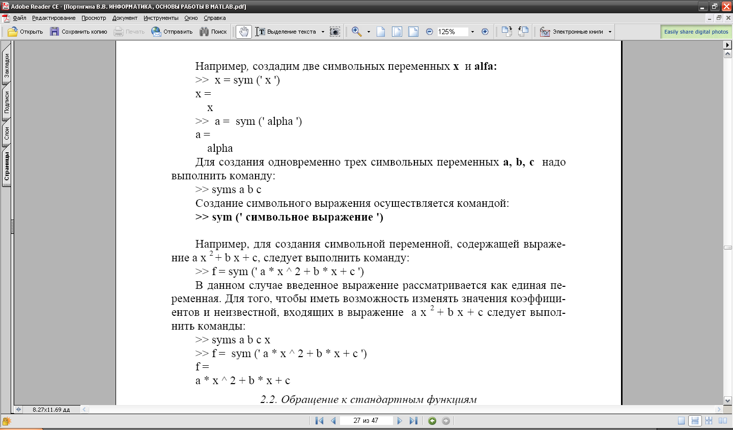 2. Символьні обчислення в пакеті MATLAB|