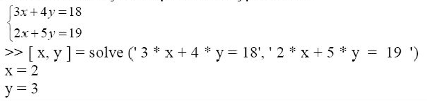 Для вирішення системи рівнянь алгебри використовується команда solve|