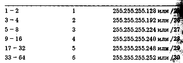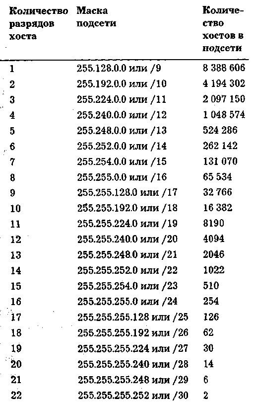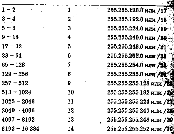 В наступних таблицях наведені списки ідентифікаторів розподіленої класової мережі, що відповідають необхідній кількості під мереж. Ці таблиці можна застосовувати для визначення схеми поділу на під мережі для ідентифікатора класової мережі.
