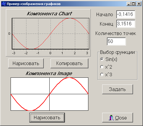 Написати програму відображення графіку вибраної функції за допомогою компонент Сhаrt і Іmаgе.