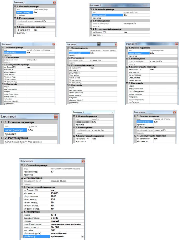 Приклад заповнення закладки «Властивості» для об’єкта «звичайний стрілочний перевід».