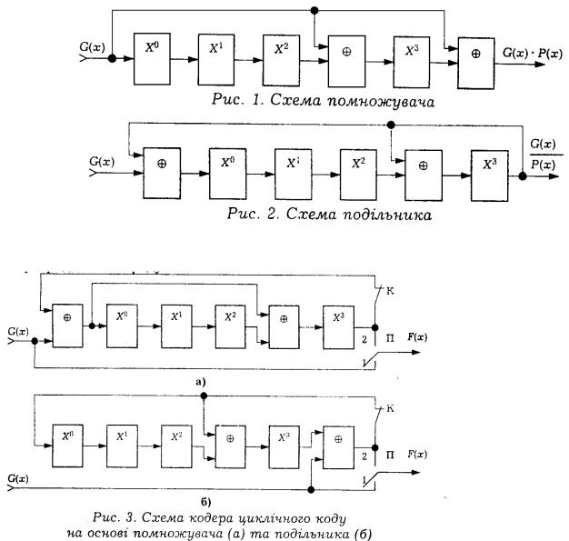 Для утворення циклічних кодів використовуються так звані неприведені поліноми Р(х), тобто многочлени, які не можна представити добутком поліномів нижчих степенів. Існує декілька різних способів кодування [1, 2].