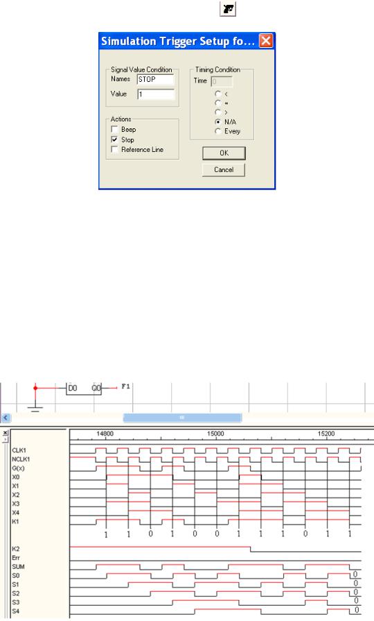 Рис. 6. Меню Simulation Trigger Setup (задання умови закінчення моделювання)