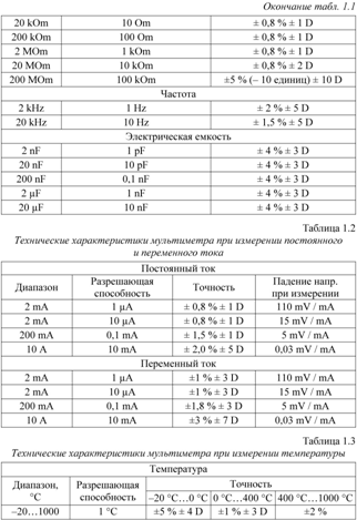 Таблица 2 – Технические характеристики мультиметра