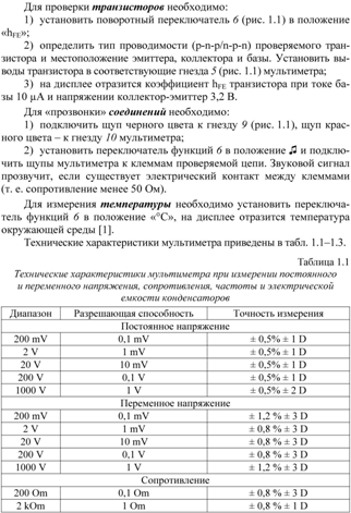 - выполнение диодного и транзисторного теста;