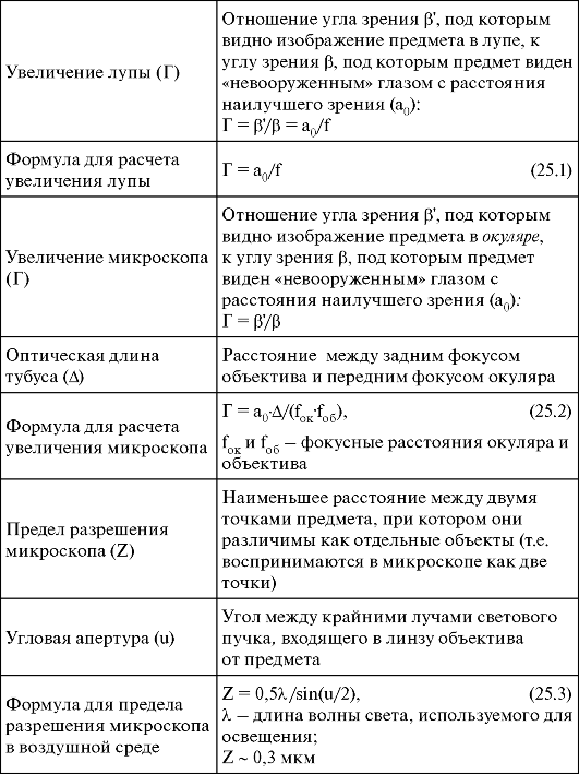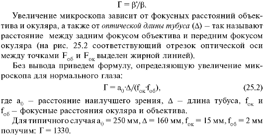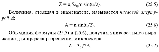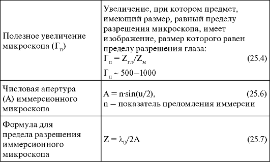 Отметим, что при использовании микроскопа для фотографирования объекта в формуле (25.4) вместо ZГЛ следует использовать предел разрешения пленки Z ПЛ.
