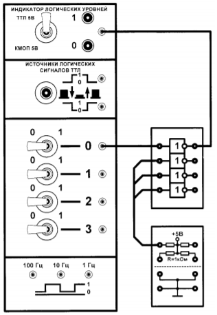 Разрабатываем принципиальную схему логического устройства и собираем её на лабораторном стенде (рис. 3)