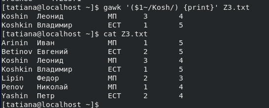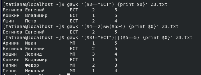 Задание 2. Изучите материал работы, выполняя рекомендуемые задания. Для экспериментов создайте свои файлы, структурно похожие на приведенные в лабораторной работе для проверки соответствующих функциональных возможностей. Можно скопировать подходящие файлы, имеющие структуру таблиц из доступных системных каталогов, например, из /users или /tmp. Файлы, имеющие структуру таблиц - это файлы, состоящие из записей, разделенных на поля специальными символами: пробелами, табуляцией, двоеточиями или другими символами-разделителями.