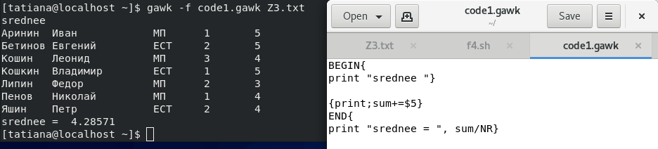 Арифметические операторы и функции и оформление инструкций gawk отдельным файлом
