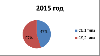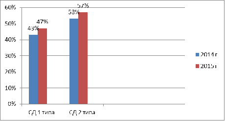 Из диаграммы видно, что за период с 2014-2015г увеличивается рост на 4 % , на примере пациентов ГБУ РС (Я) «РБ №2 - ЦЭМП» с диагнозом сахарный диабет.