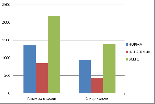 2191 пациент глюкоза в крови и сахар в моче в норме 1348 пациентов, патология