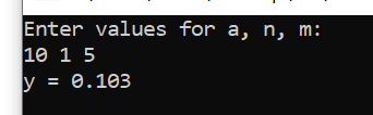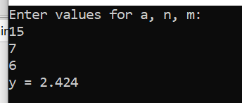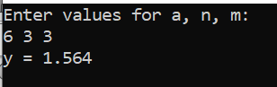 printf("Enter values for a, n, m:\n");