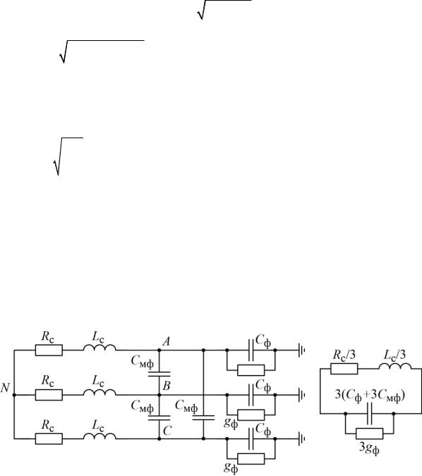 Рис. П4. Схема замещения для оценки параметров переходного процесса после погасания дуги ОЗЗ