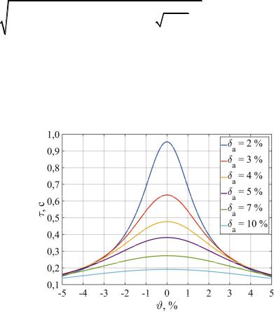 Трансцендентное уравнение (20) может быть разрешено относительно τ графически или численно. На рис. 6 показана совокупность решений в зависимости от степени расстройки ϑ при различных значениях δа. Видно, что степень расстройки реактора оказывает сильное влияние на интервалы времени между повторными зажиганиями, особенно в сетях с малыми ак-