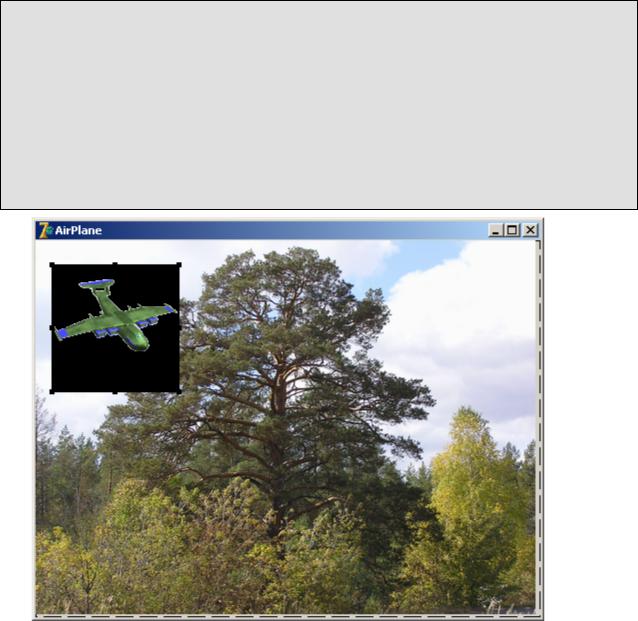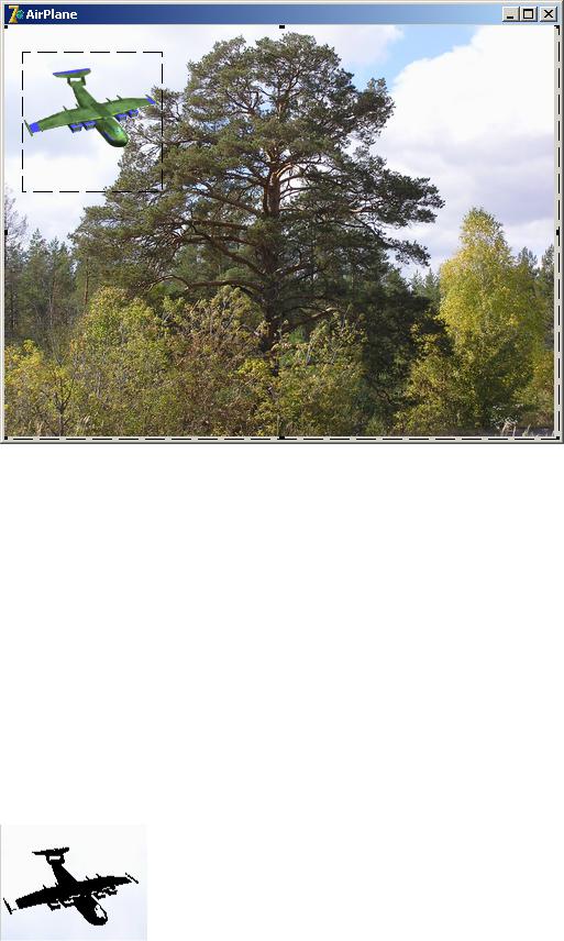 Создайте новый проект. На форму frmAirPlane поместите компонент TImage (Background). Загрузите в его свойство Picture изображение. Установите значение свойства AutoSize=True для компонента Background.