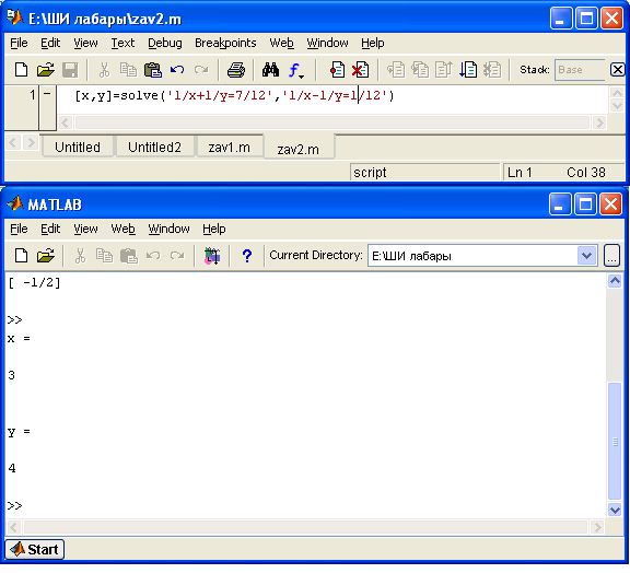 Для вирішення системи рівнянь алгебри використовується команда solve