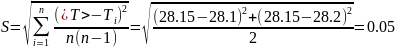 Рассчитаем погрешность непосредственного измерения температуры. Опередим среднеквадратичную погрешность среднего арифметического: