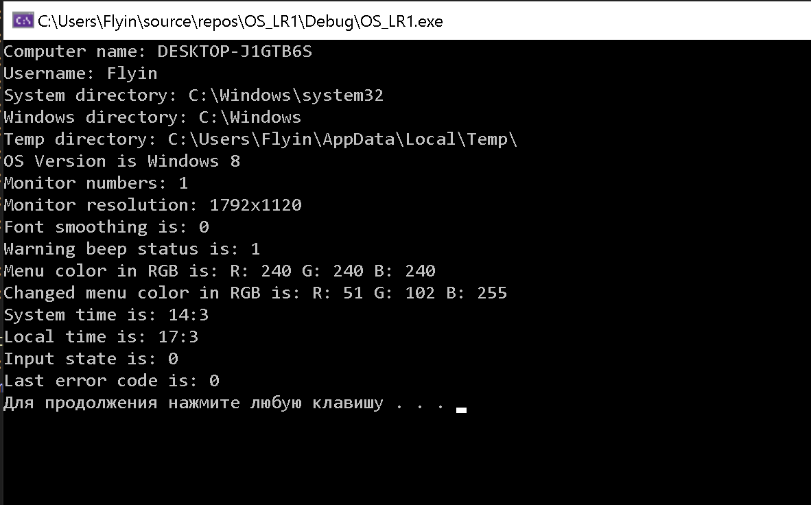 // Пункт 5, получение системных параметров