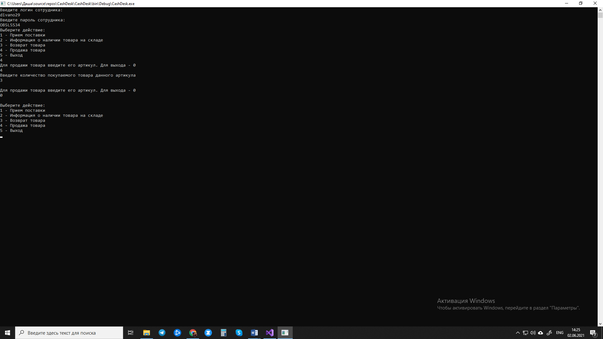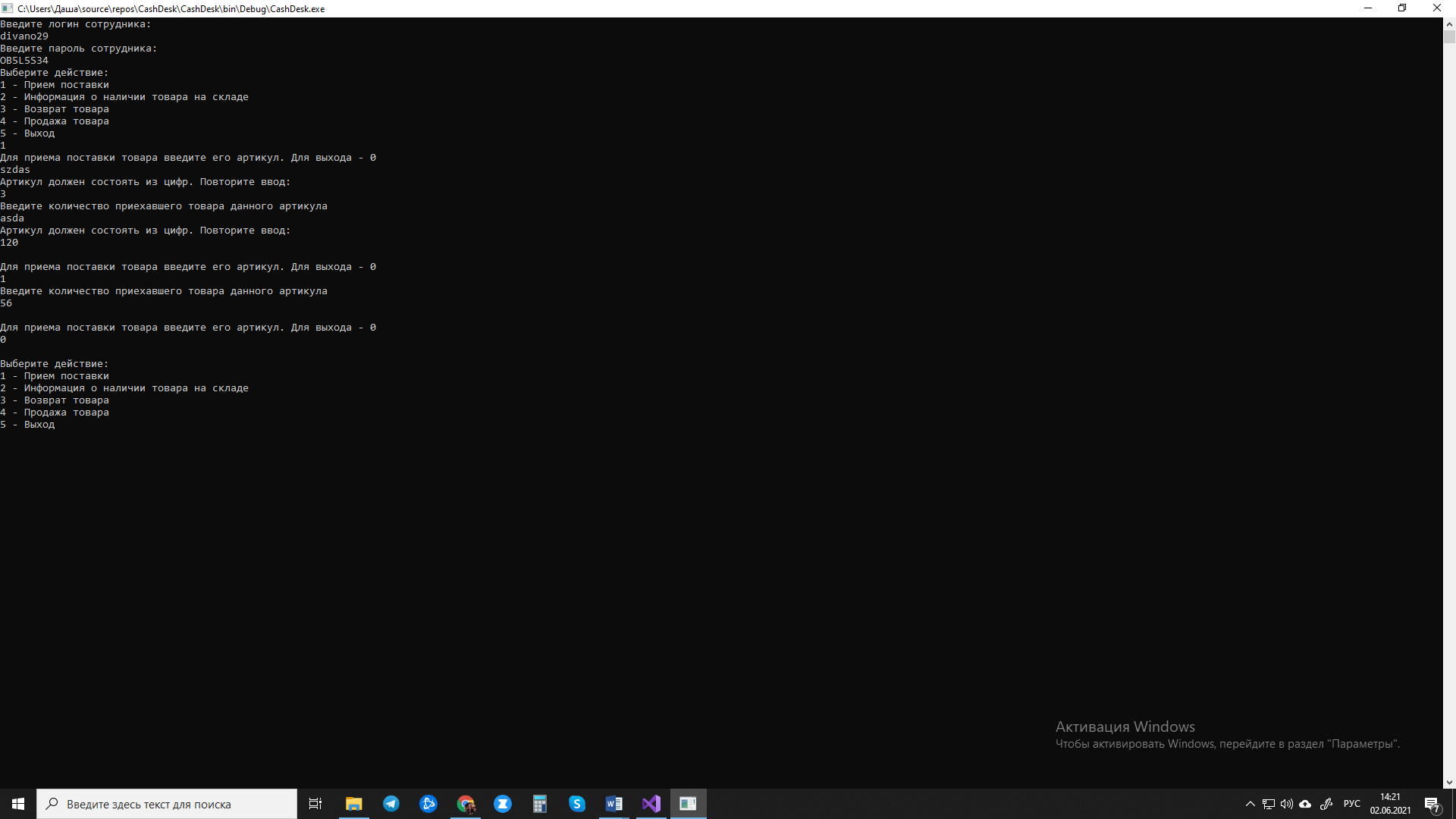 Console.WriteLine("Товара с таким артикулом нет на складе");