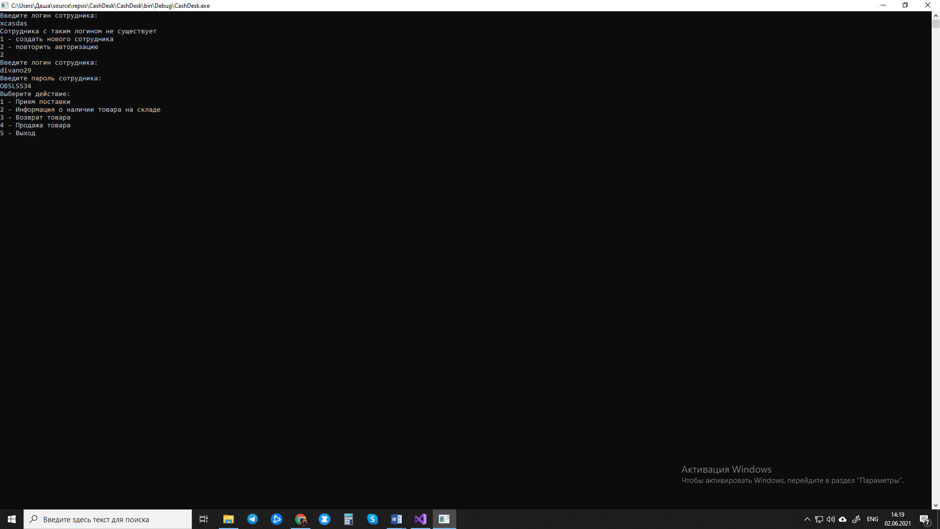 Console.WriteLine("Сотрудника с таким логином не существует");