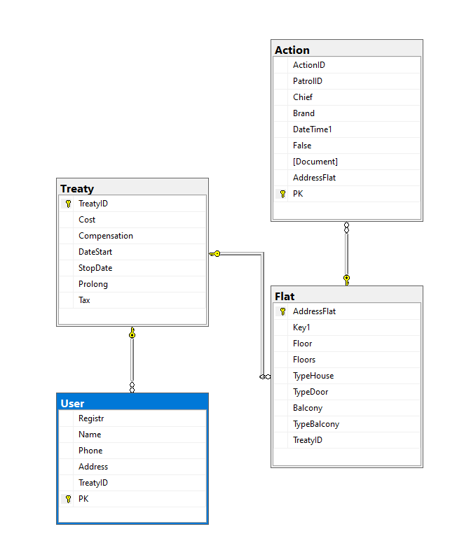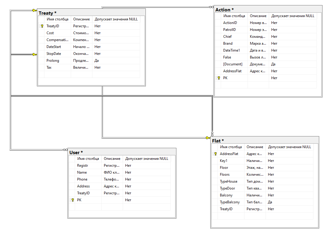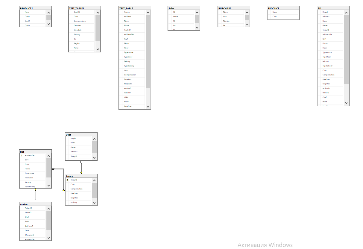 Удаление всех объектов, кроме многотабличной БД – диаграмма результата