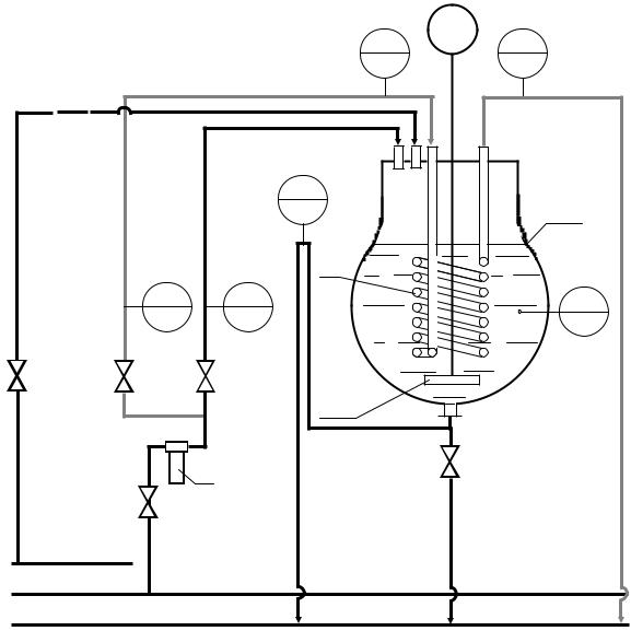 Сосуд снабжён змеевиком З и стеклянной лопастной мешалкой М диаметром dм 136 мм, вращаемой электродвигателем ЭД. Частота вращения мешалки n 2 с 1.