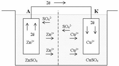 Для примера рассмотрим подробно процессы, происходящие в гальваническом элементе Якоби – Даниэля (рисунок 2.1).