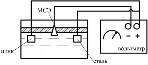 3. Для измерения потенциала каждой пары подключите клемму МСЭ к отрицательной клемме милливольтметра, а металлического электрода – к