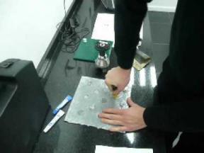 2.2.С помощью адгезива приклейте к поверхности лакокрасочного покрытия тестовый образец как показано на рисунке 7.7.