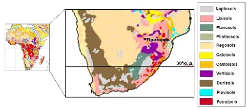 территории ЮАР имеет эллиптический характер в зависимости от положения к