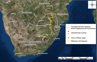 Работа посвящена исследованию ландшафтов восточной части Южно-Африканской Республики. Выбор территории обусловлен тем, что именно здесь, прошел маршрут экспедиции сотрудников кафедры физической географии и ландшафтного планирования Института наук о Земле в ноябре 2014 года. Основной целью экспедиции было исследование и оценка современных ландшафтов восточной части страны на основании анализа собранных данных во время поездки, так и анализа литературы. Выбор маршрута был предложен сотрудниками университета Венда (Venda), ЮАР и обусловлен тем, что во время поездки были отобраны образцы почв и пород, используемых в этномедицине, а именно, геофагии.