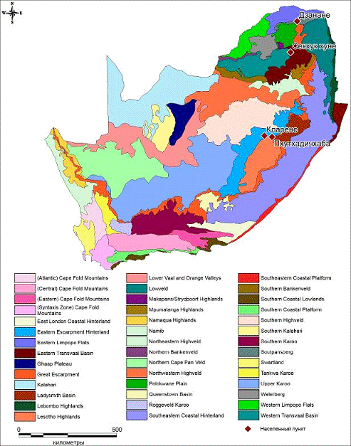дать описание геоморфологических провинции Южной Африки в соответствие с подходами, принятыми и используемыми в ЮАР;