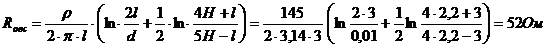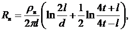 где Rв, Rг - соответственно сопротивления вертикального стержня и горизонтальной полосы, Ом;