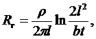 удельное сопротивление грунта, Ом•м;- длина горизонтальной полосы, м;- ширина