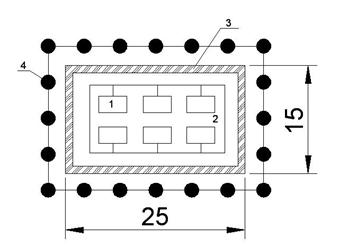 ) Определяем конфигурацию группового заземлителя (контур) с учетом возможности его размещения на отведенной территории и соответствующую длину горизонтальной полосы: