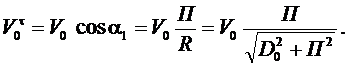 и тангенциальная составляющие скорости V0; α - угол