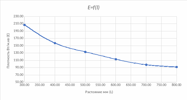 Графическая зависимость интенсивности теплового излучения от расстояния.