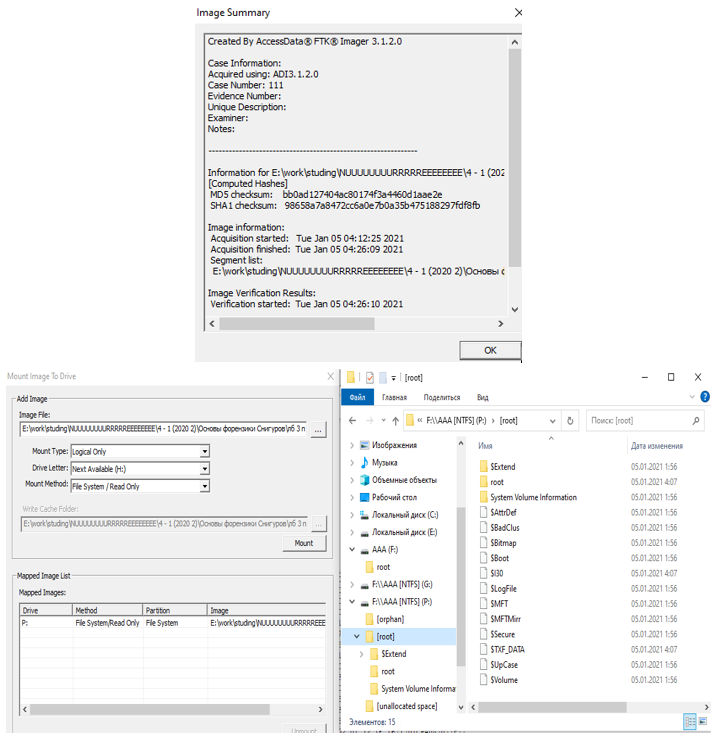 На рис. 2 показано зворотне монтування створеного образу флеш накопичувача. Після створення образу також створюється контрольна сума для підтвердження цілісності створеного образу.
