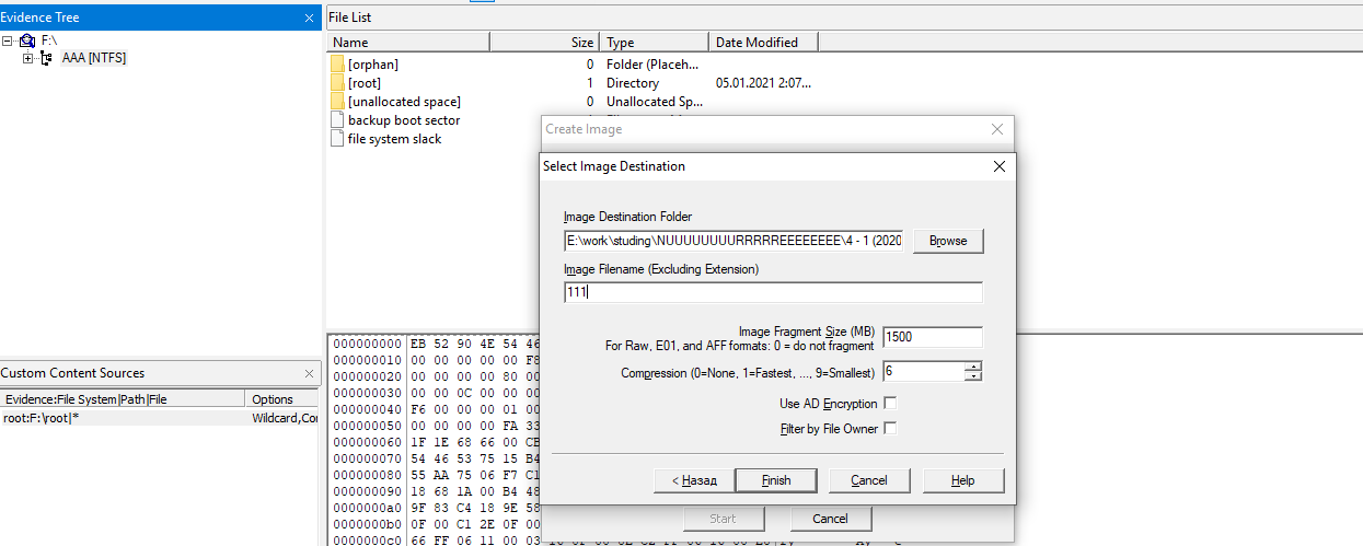 Для роботи використовувалась програма Access Data FTK Image, дозволяє робити образи реєстру для дослідження інформації про облікові записи користувачів, або роботу системи у криміналістичних розслідуваннях.
