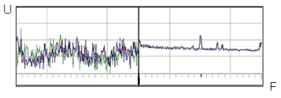 Для выявления слабых сигналов используются алгоритмы накопления и усреднения, которые уже давно применяются для выделения сигналов из шума. На рис.3 показан один и тот же участок спектра, полученный без усреднения (левая часть рисунка) и с усреднением 15 раз). Применение алгоритмов усреднения на сертификационных испытаниях дало возможность стойко выявлять сигналы, что находятся всего на 0,5 дБ выше уровня шума и даже на 1 дБ ниже уровня шума.