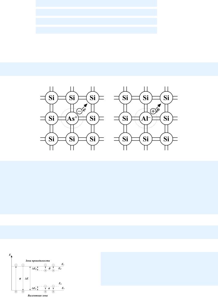 Существуют полупроводники n-типа и p-типа, схематично представленные на рисунке