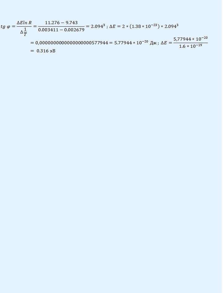 Экспериментальным путем доказали зависимость сопротивления от температуры и тока от напряжения. Построили графики их зависимостей. И определили энергию активации проводимости: