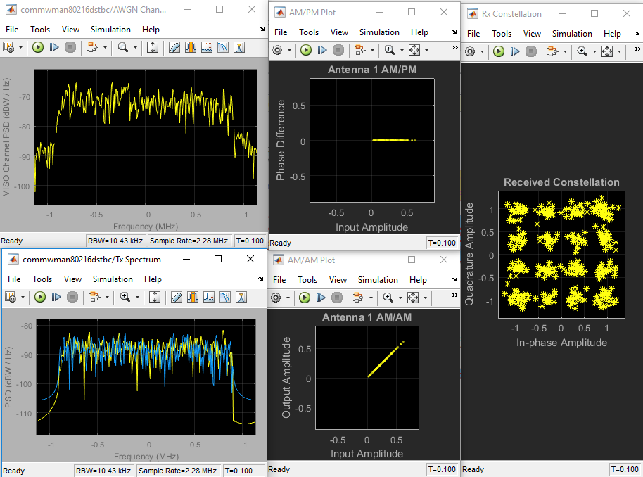 В ходi лабораторної роботи було досліджено основні параметри бездротової телекомунікаційної системи стандарта IEEE 802.16 з використанням просторово-часових блочних кодів STBS (Space Time Block Coding) і без їх використання. Схема Аламоуті забезпечує значне рознесення сигналів і високу швидкість передачі інформації за рахунок введення ортогональності по фазі між сигналами, що одночасно передаються, і парами сигналів, послідовно випромінюваних кожною антеною. Узагальнення даного коду на випадок більшої кількості антен передавача призвело до створення цілого ряду STBC. Однак на відміну від схеми Аламоуті дані коди можуть забезпечувати або значне рознесення сигналів, або високу швидкість передачі інформації.
