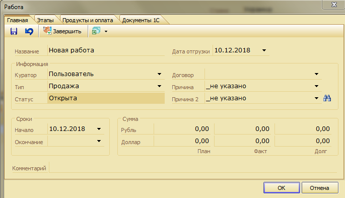 Меню «Сделки» предназначено для создания, просмотра и редактирования самых разнообразных сделок, заключения договоров и тд. В этом меню можно сделку можно разбить на мелкие этапы, следить за их выполнением. Это позволяет улучшить контроль над контрактами, выделить приоритетные, что, в свою очередь, будет способствовать продажам и увеличению прибыли и доходности.
