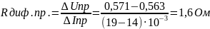 Прямое статическое и дифференциальное сопротивления в двух точках для диода и./в., диода Шоттки: